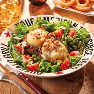 Un aller simple pour les States ! Notre BEST OF USA, c’est un combo explosif de saveurs : une viande juteuse grillée à la flamme, du cheddar fondant, des oignons caramélisés, du bacon croustillant, et une sauce BBQ maison. L’Amérique comme on l’aime, dans chaque bouchée.